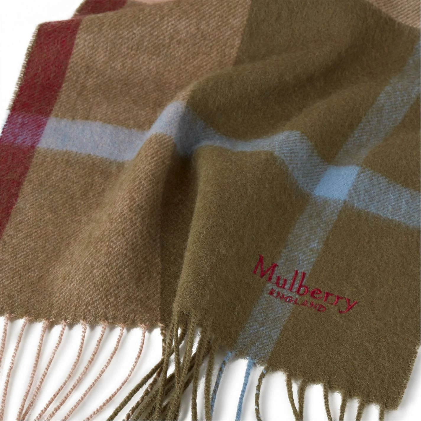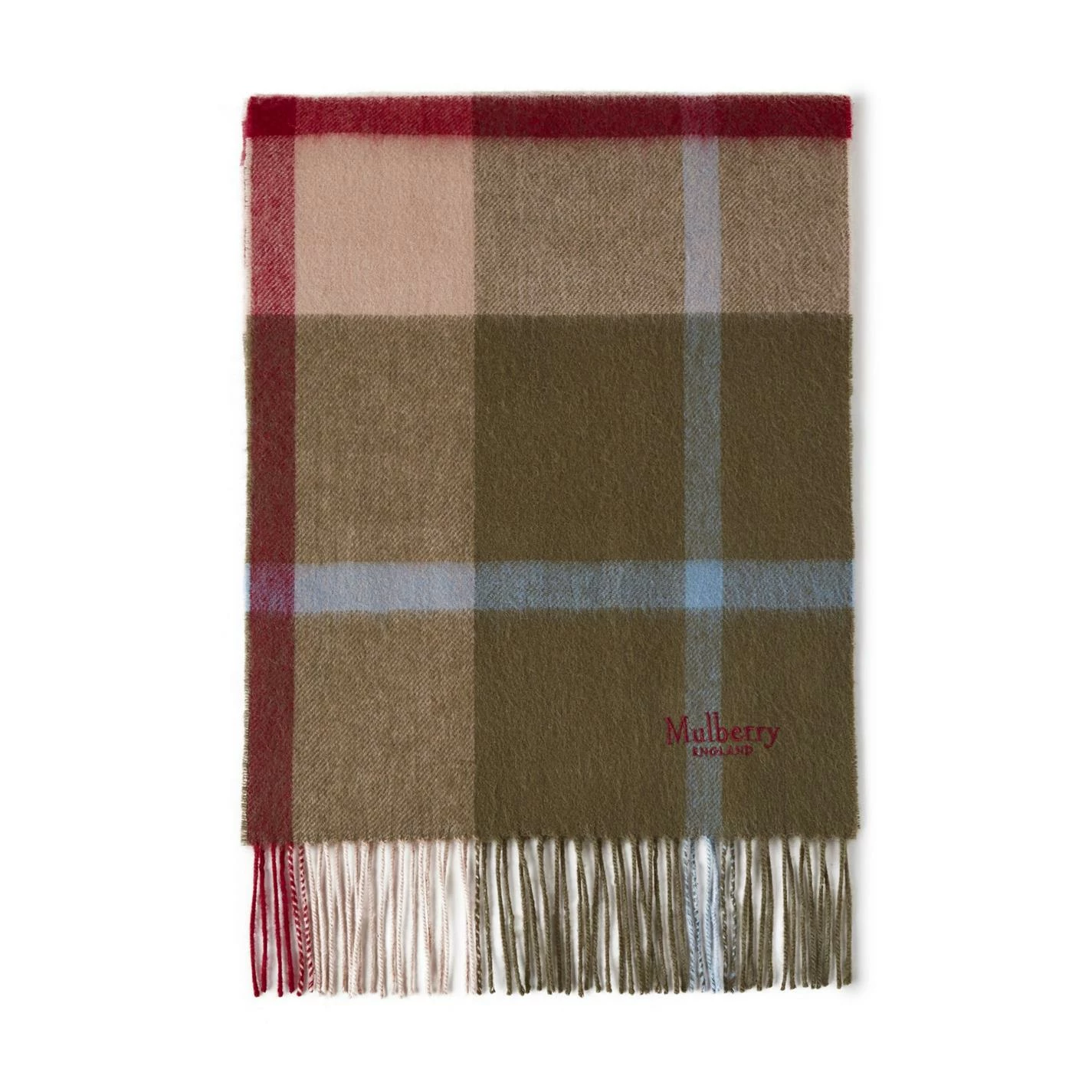 A classic woven scarf made in the UK from 100% Lambswool, finished with fringing and an embroidered Mulberry signature. W: 30cm x L: 200cm