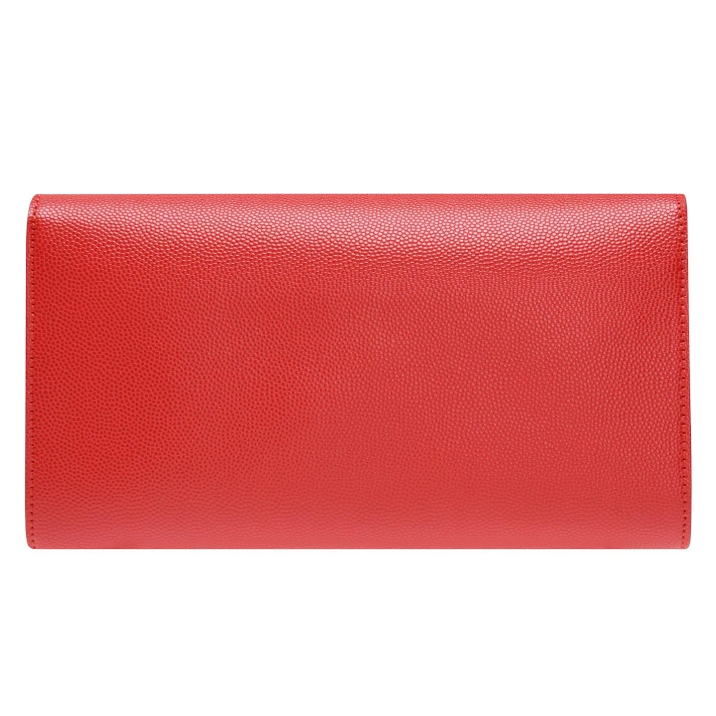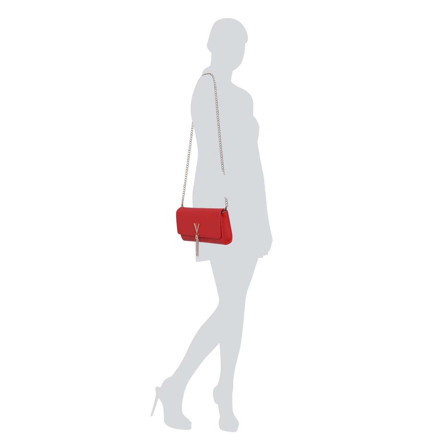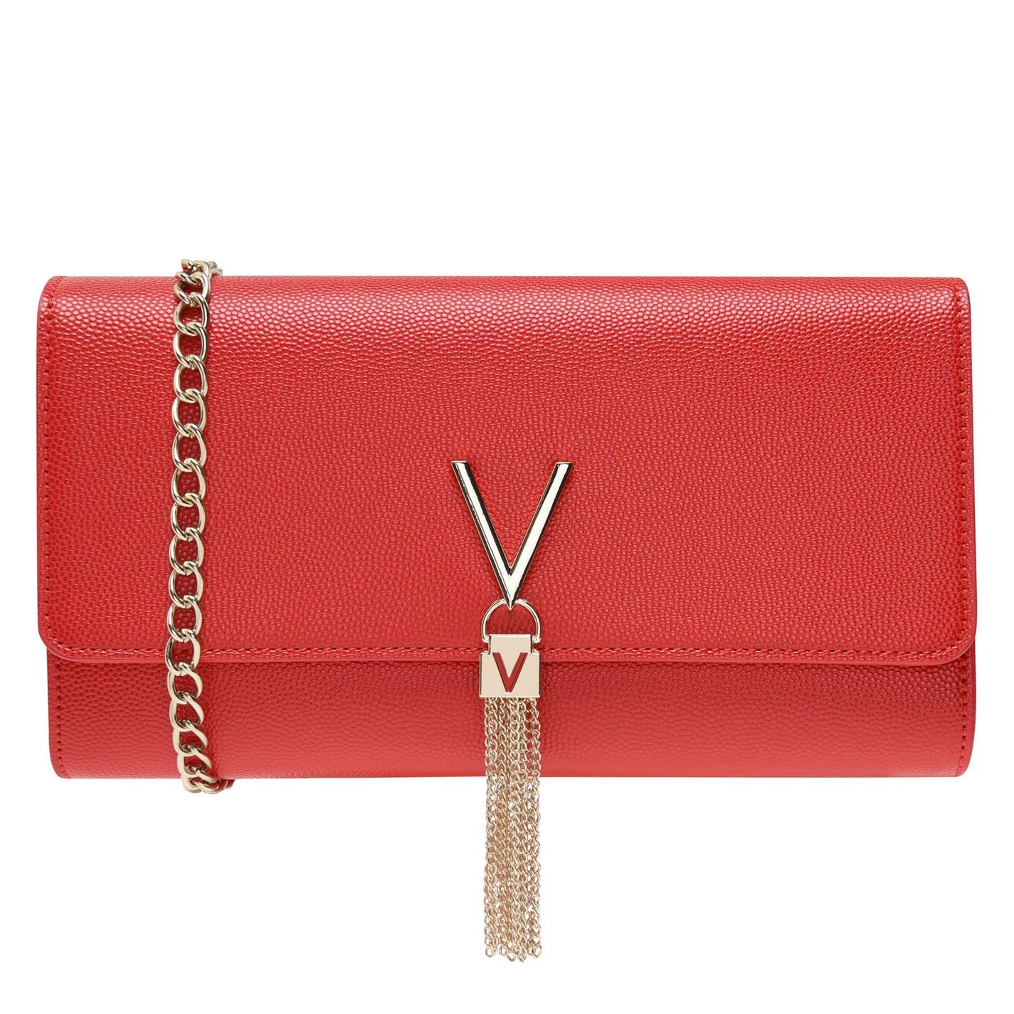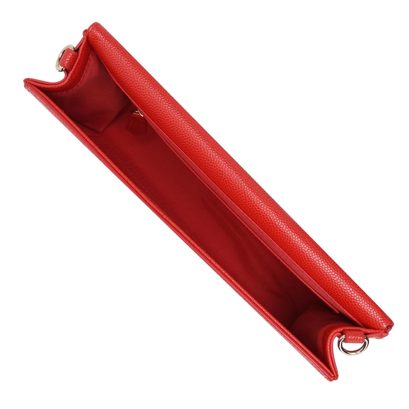 Crafted with a textured feel, the Mario Valentino Divina Clutch Bag has a removable chain strap for a versatile shoulder or clutch bag look depending on the event. It is designed with a large main compartment which folds and fastens with a popper. Bag is complete with chain detail and a signature Mario Valentino logo.
