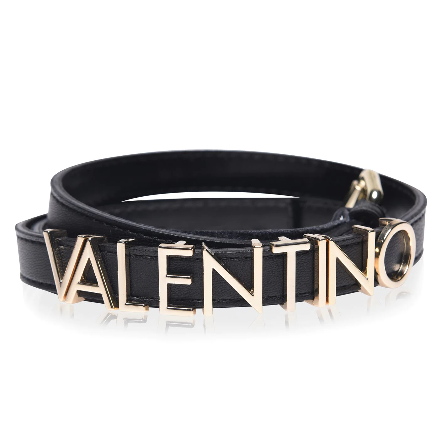 This slim belt from Mario Valentino has been crafted with faux leather and gold toned metal hardware branding to deliver a stylish look.