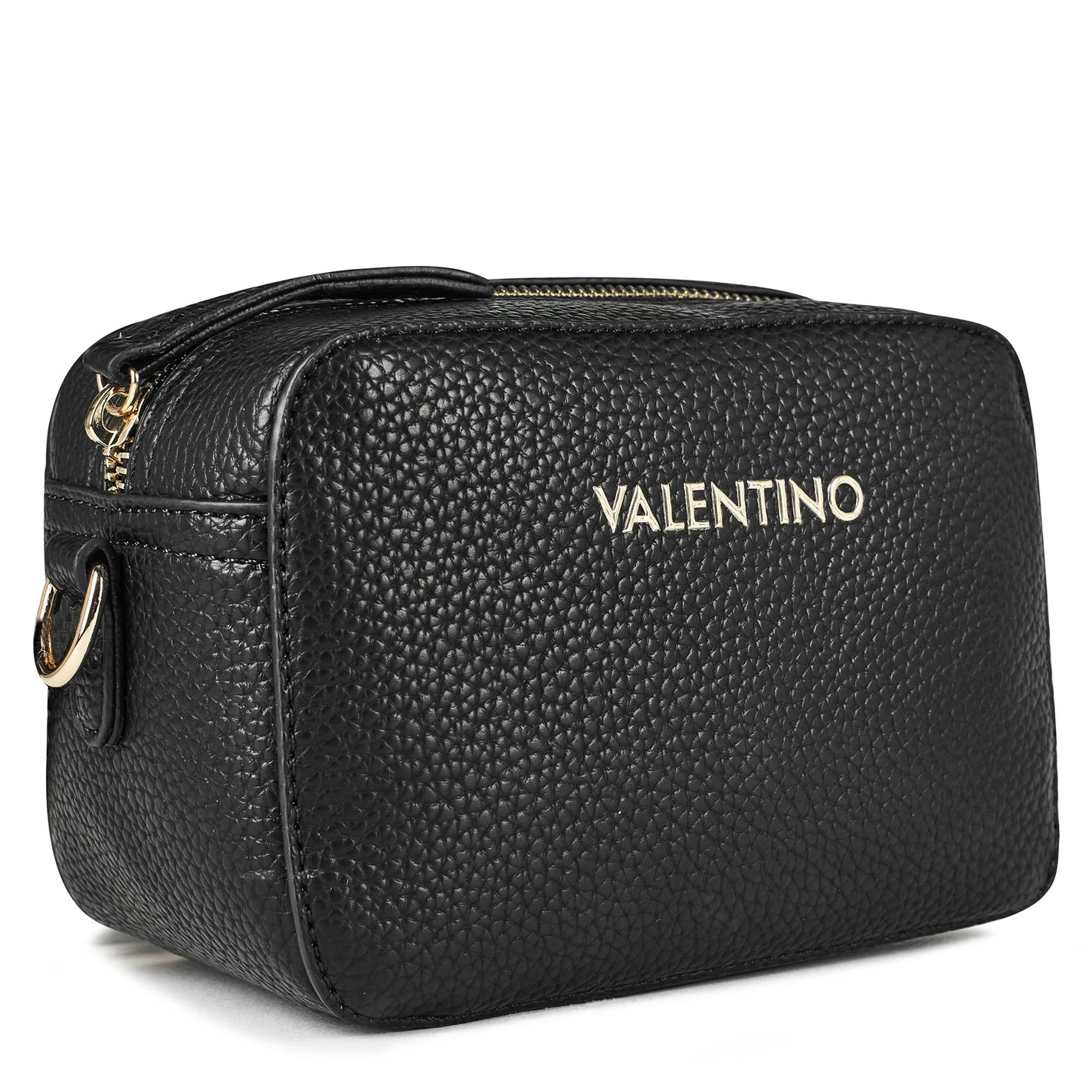 Finalise your ensemble with this Salvy Crossbody Bag from Mario Valentino. Crafted with a pebbled leather finish throughout, this crossbody bag features one main zip compartment and a gold-toned shoulder strap for a premium look. With tonal stitching detailing, this bag is then finished with the Valentino gold-toned logo to the front for instant designer recognition.